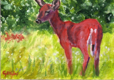 Along with the abundance of birds in our yard we have been fortunate to catch sight of a deer or two as they make their way through the wild olive trees growing on our property. Just yesterday morning, for example, as we were getting ready to go golfing (our favorite summer activity) we saw a deer nibbling on some bushes at the back of our house. My husband Jim and I always pause to watch the beautiful animals, hoping they don't make their way to our hostas but happy to see them looking healthy as they munch on the variety of wild shrubs we have growing on our property.
