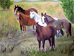 I don’t quite understand how my artwork has been proclaimed by some people “cute”. Is it the subject matter? Or perhaps the size of the paintings – recently I participated in a show and I displayed a series of paintings that were all 5”x7” animal paintings. But I’m thinking it is the subject. But unless I’m painting animals that are wearing overalls or dresses and sun bonnets, there really is nothing cute about them. And I’m not painting clothed animals. I’m a serious artist, I paint serious animal paintings. (Oil painting at left, Mustangs, is 30"x40").
